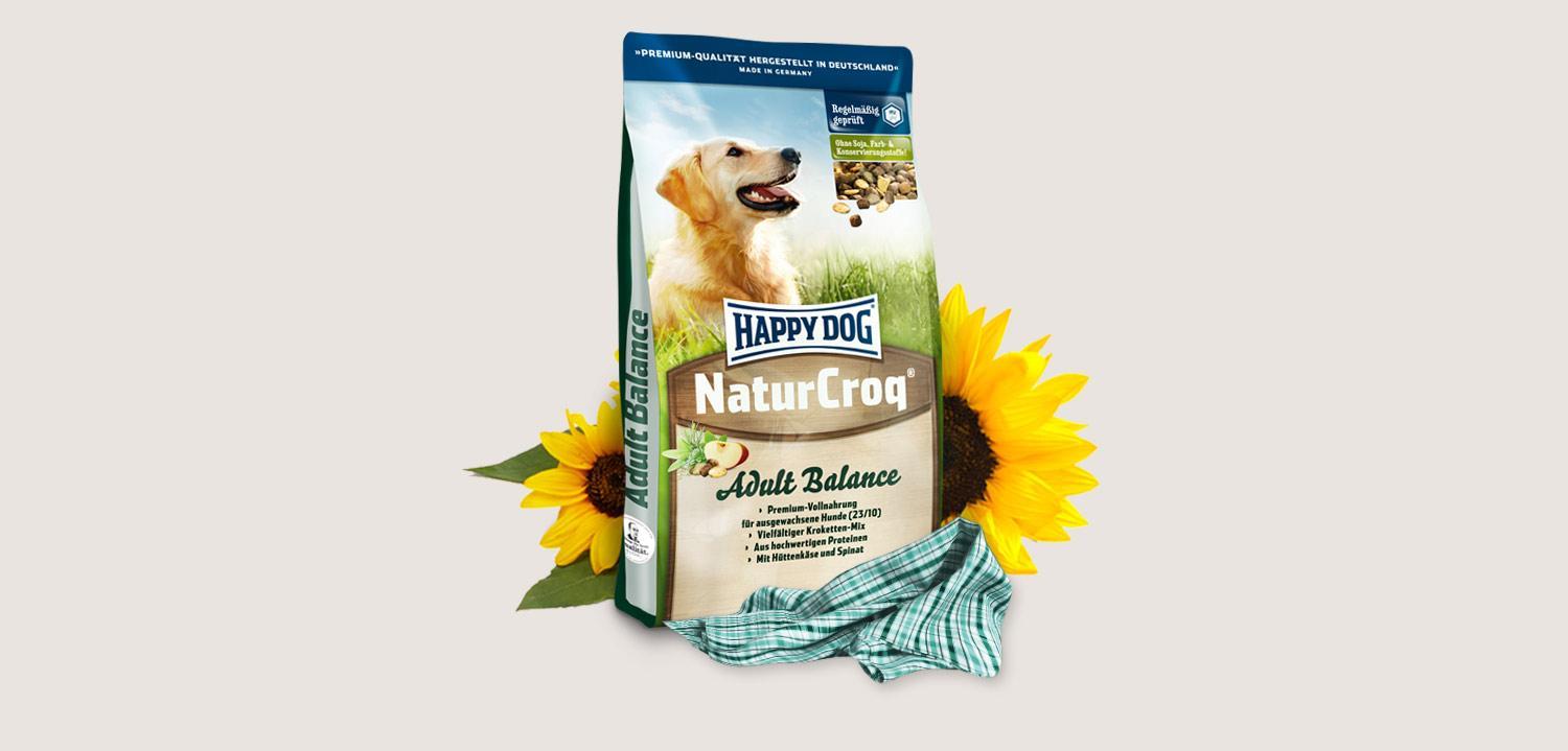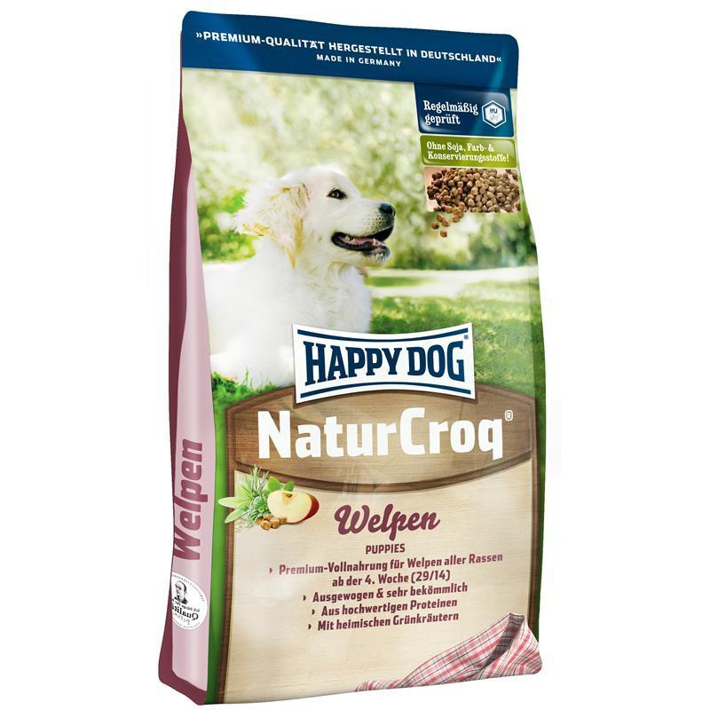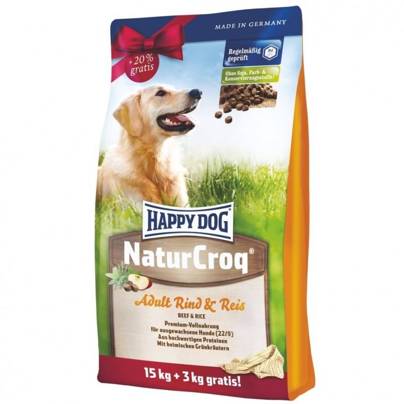 Качественная и недорогая серия кормов для собак Happy Dog NaturCroq состоит из рационов для всех возрастов, как для щенков, так и для пожилых животных. Основу питания, максимально приближенного к домашней еде, составляет говядина, птичье мясо и пшеница из Баварии. Главные принципы в изготовлении кормов данной линейки — это, прежде всего, отсутствие искусственных добавок для усиления цвета и вкуса, консервантов, кукрузного глютена и сои.